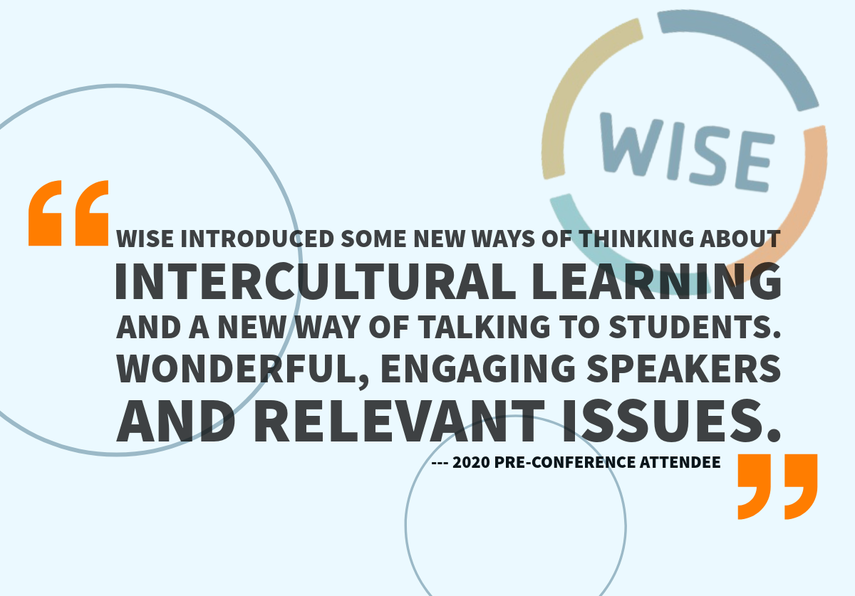 WISE is the pioneering conference for faculty leaders, program coordinators, and administrators to develop the knowledge and skills needed to help students advance their intercultural awareness and competency, for abroad experiences and/or life beyond college.