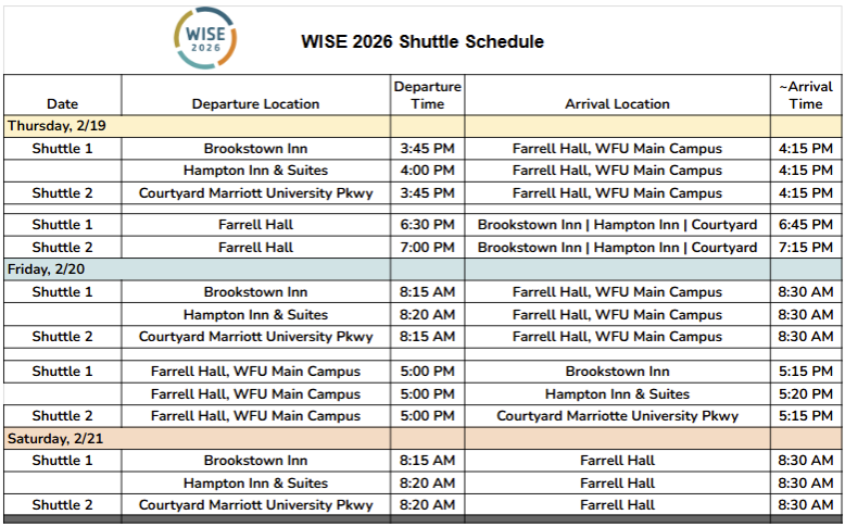 We are always looking for ways to improve the WISE Conference experience for attendees; therefore, your feedback is encouraged by taking a few minutes to share your thoughts at https://go.wfu.edu/WISE26_Post-Conference-Eval